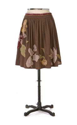 Light pink, burgundy and mustard chiffon appliques accumulate on pleated twill. By Viola.