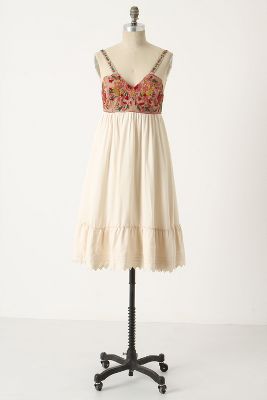 Rich, Nordic crewelwork, brightened by golden threads, only adds to the luxury of Zehavale's brushed cotton and sensuous silk frock.