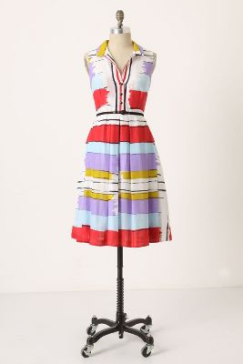 Streaks of poppy red, sky blue, brilliant periwinkle and moss green stripe Floreat's crisp poplin shirtdress, as if lovingly placed by an artist's brush.