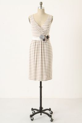 Wild appliques spin, spin, spin atop the waistband of Little Yellow Button's striped, surplice frock.