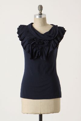 The creme de la creme of jersey tops, adorned with rare rosettes, never-before-seen ruffles and a top-notch cowl neck. By Deletta.
