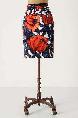 A butterfly-pleated waist capped by a lithe line of grosgrain helps incredibly brilliant poppies to flourish across Moulinette Soeurs' pique pencil.